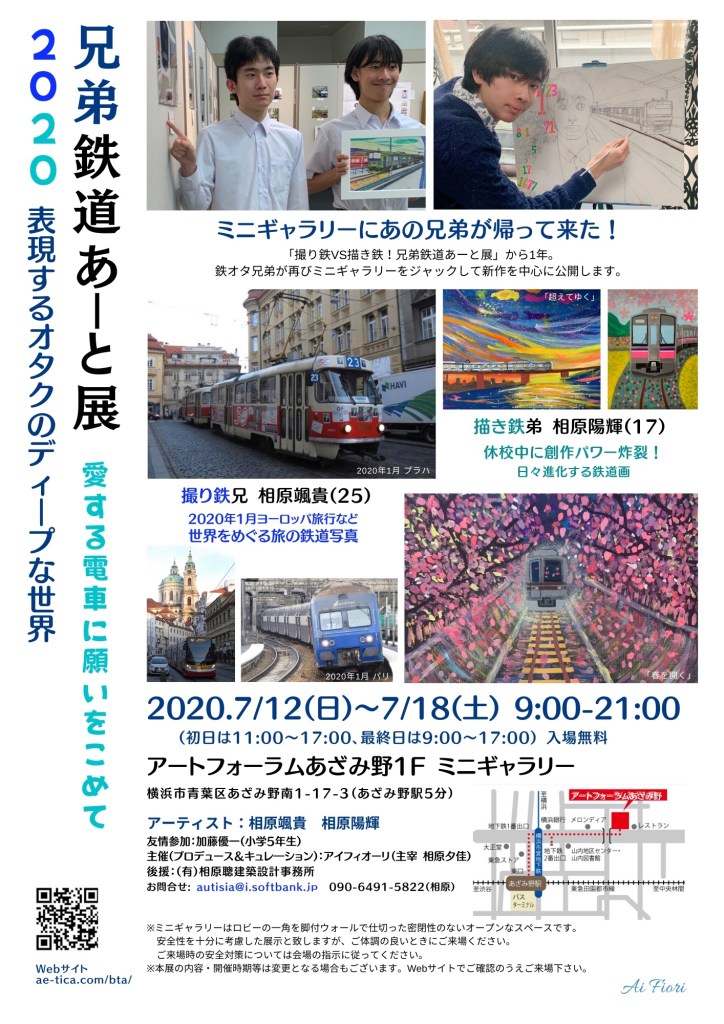 2020年7月12日から18日、アートフォーラムあざみ野1階 ミニギャラリーにて、「兄弟鉄道あーと展2020」を開催します。2019年7月に開催した「撮り鉄VS描き鉄 兄弟鉄道あーと展」の第2弾です。