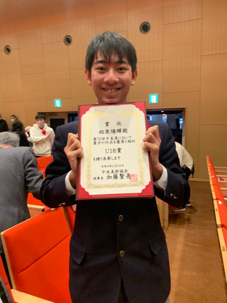 中美展でU18賞を受賞 0 01/06/202101/24/2023 投稿者: Aihara ニュースが遅れてしまいましたが、昨年11月、第72回中美展にてU18賞を受賞致しました。初めての入賞に感激しました。 上野の東京都美術館に展示され、授賞式で表彰され、感無量!です。受賞作品は個展等でも展示しますので、ぜひご覧ください。 「17歳のプラットホーム」 共有: クリックして X で共有 (新しいウィンドウで開きます) X Facebook で共有するにはクリックしてください (新しいウィンドウで開きます) Facebook いいね 読み込み中…