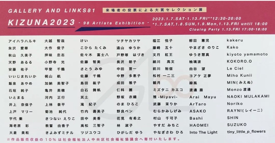 ギャラリーアンドリンクス81さんで開催の「KIZUNA2023 来場者の投票による大賞セレクション展」に出展します。