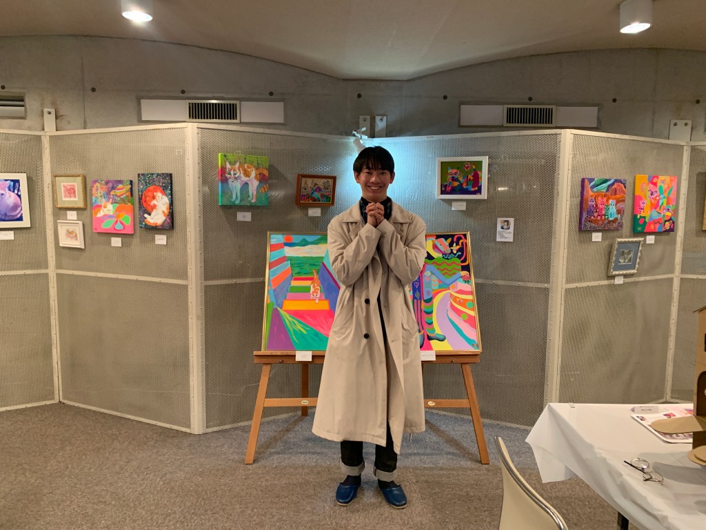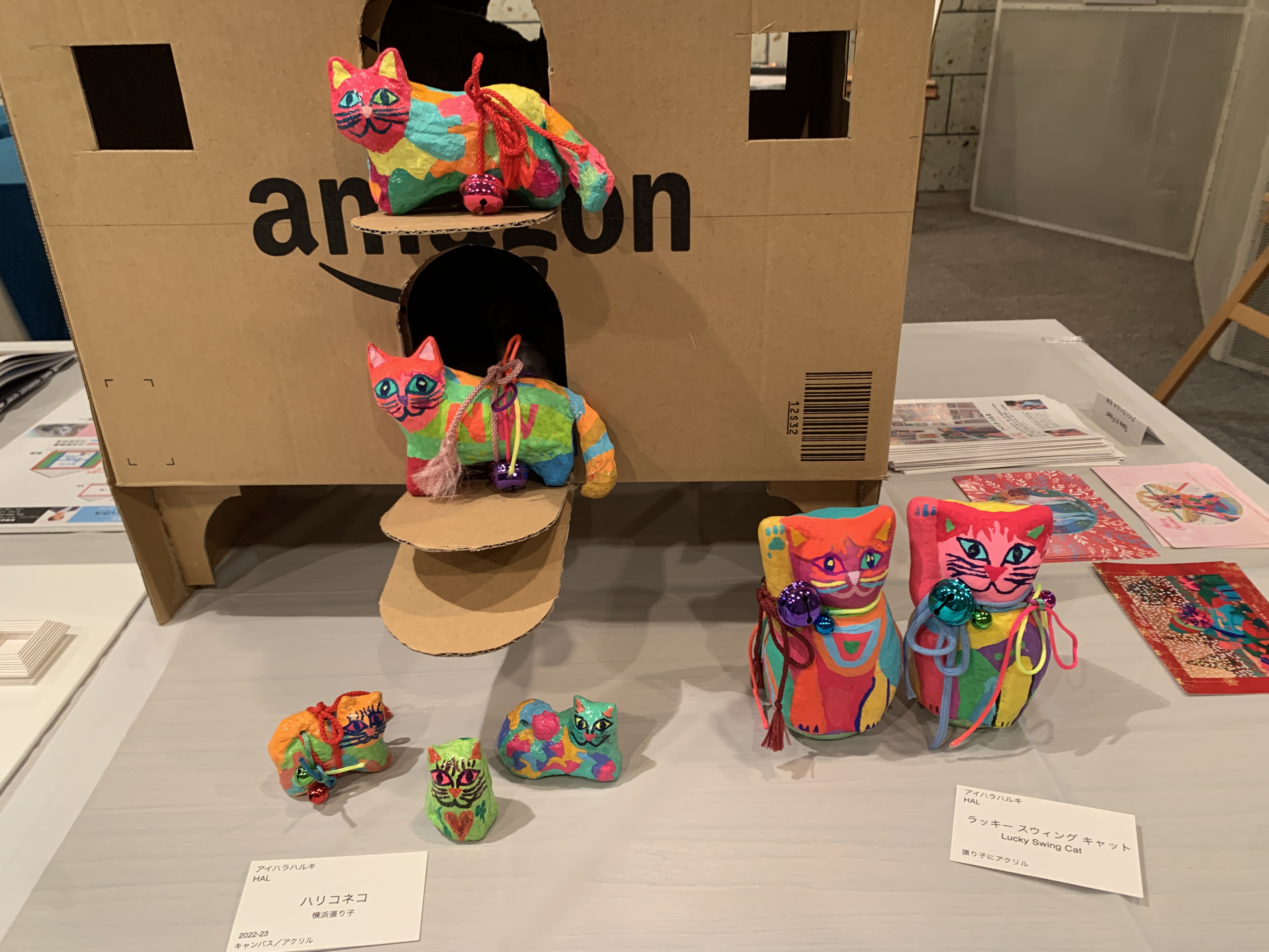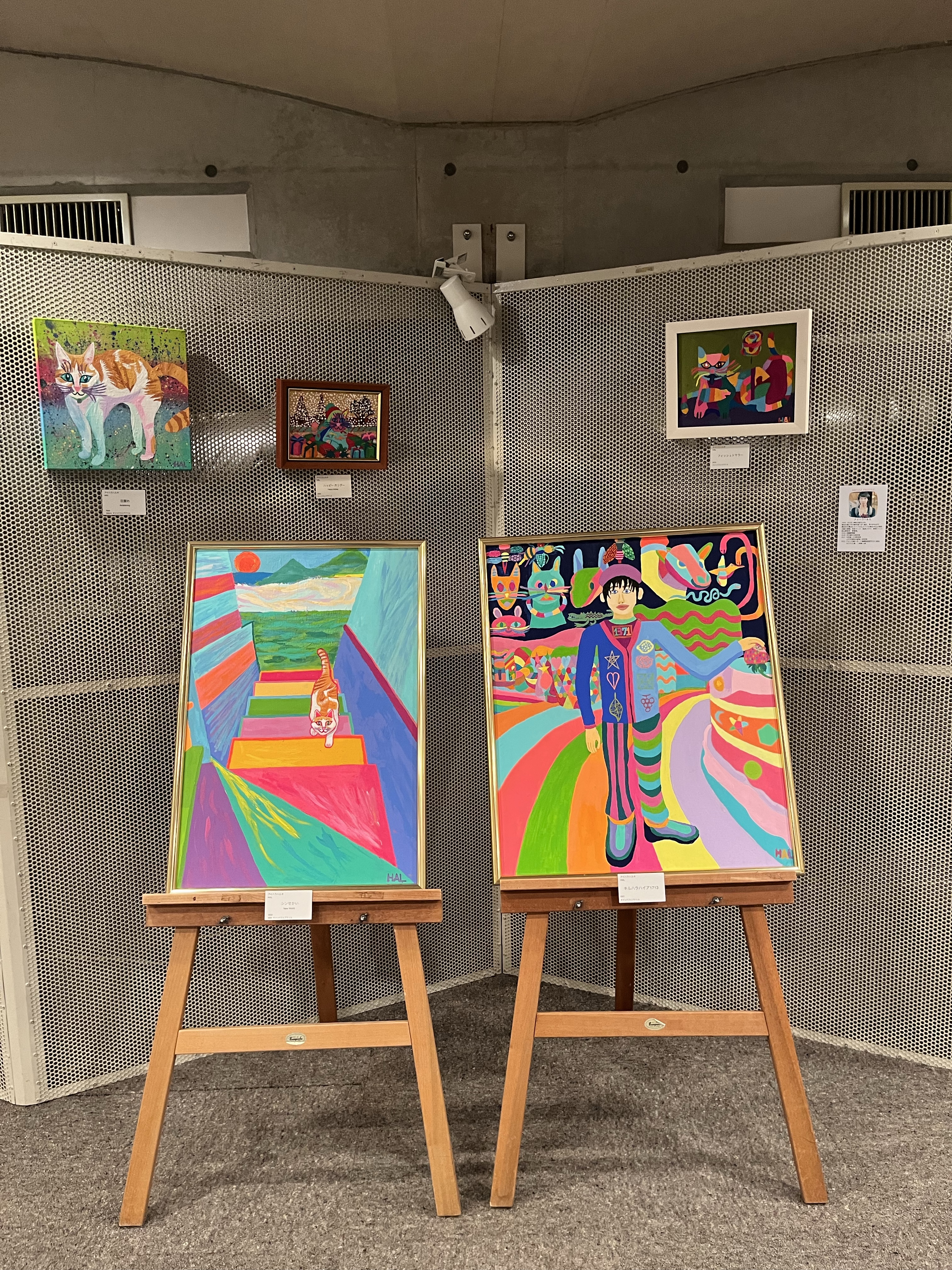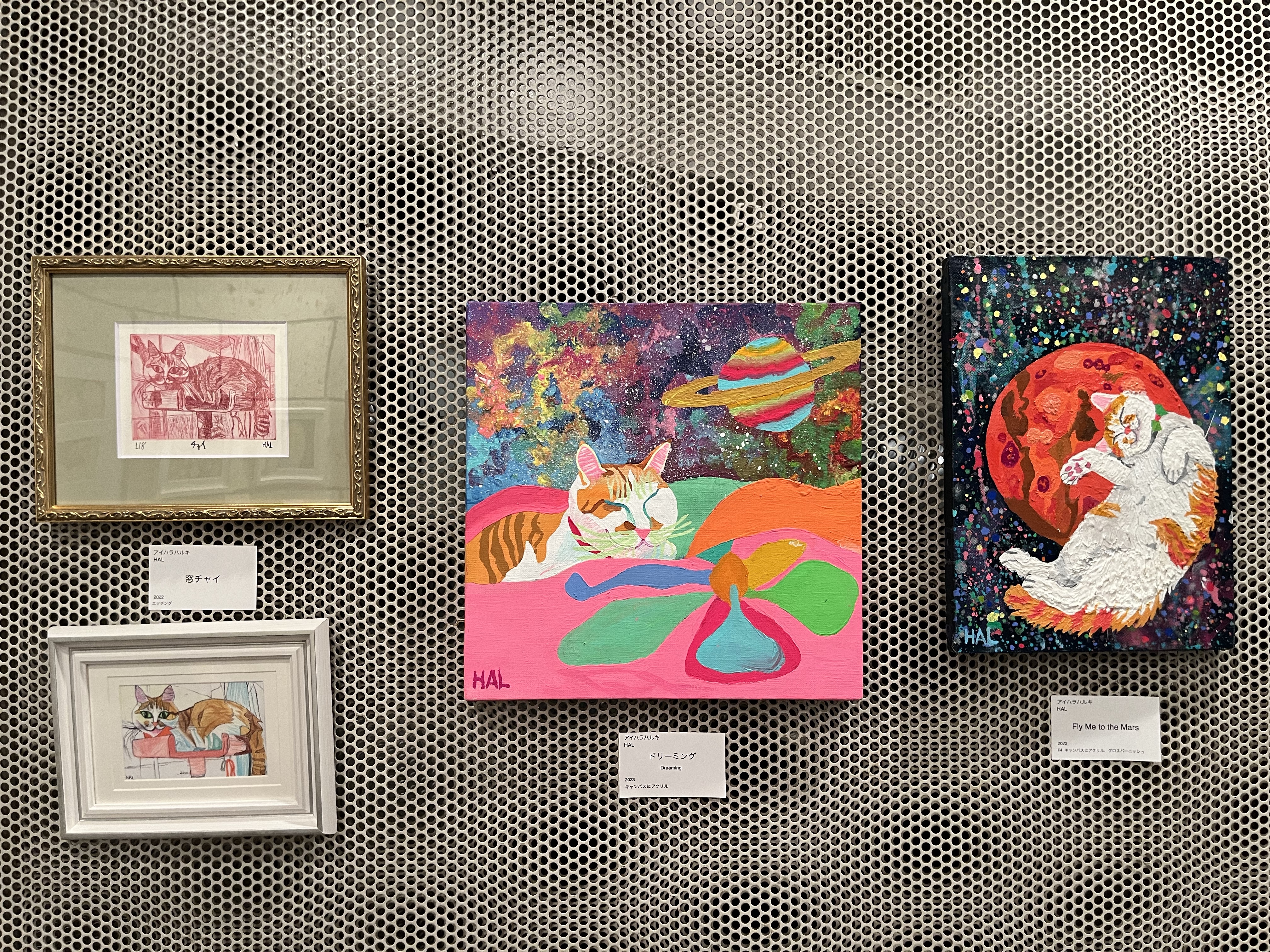 愛猫チャイの作品を中心に、チャイに出会う前に描いていた架空猫たちも再登場させて、猫愛を表現しました。猫好きなお客さま、猫の魅力を再発見してくださった方々、そして猫派アーティストの皆さんと、猫愛で繋がる、ハッピーなひとときを過ごすことができました。