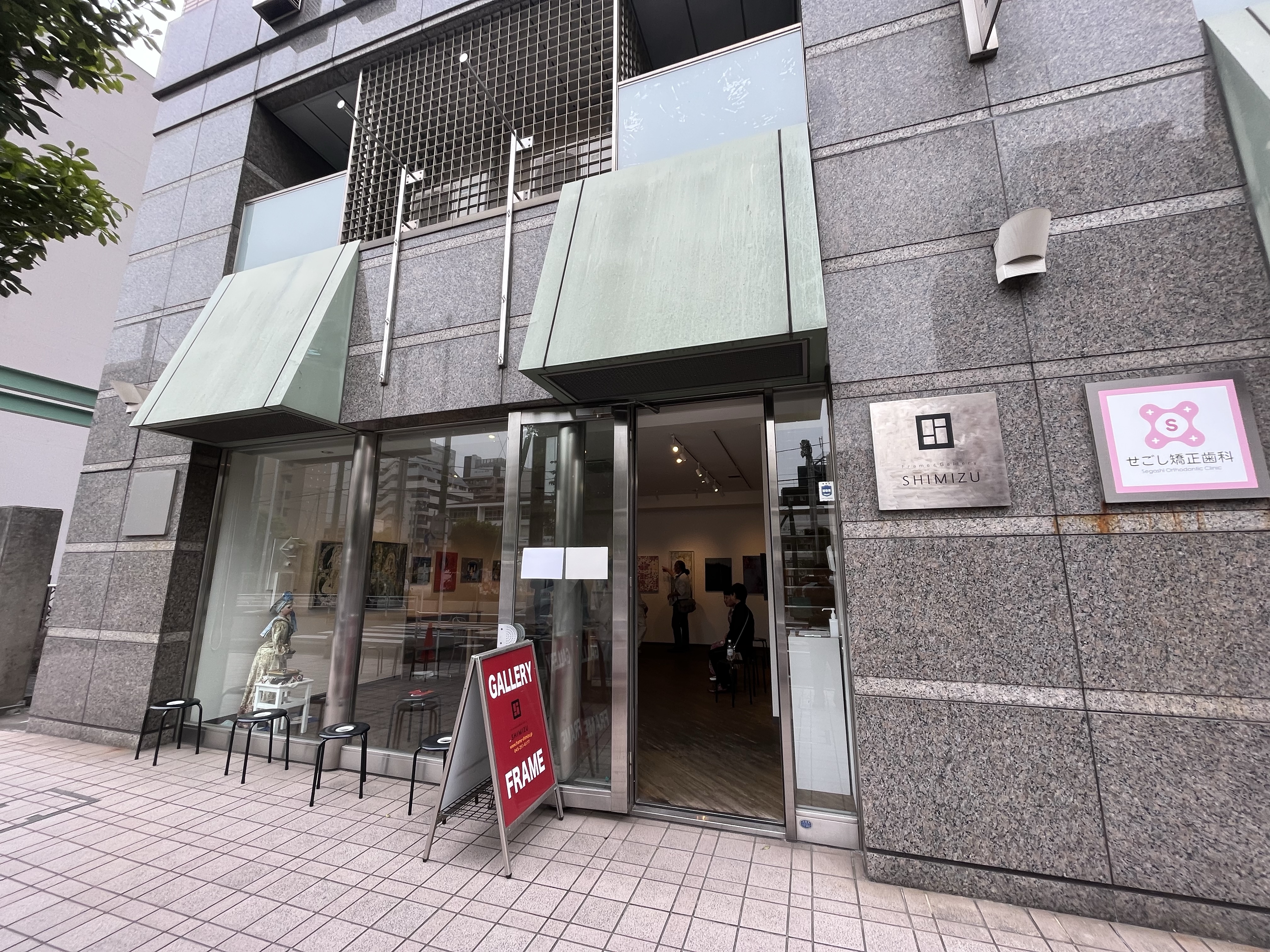 陽当たりのよい路面のギャラリーに力作が並びます。その中に展示されるという素晴らしい機会をいただき、感謝しています。