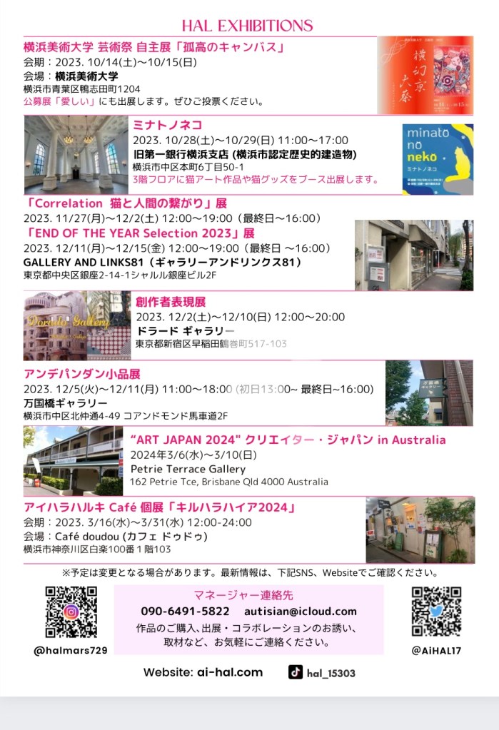 #アイハラハルキ 最新情報 0 09/30/202308/28/2024 投稿者: Aihara アイハラハルキの出展予定や近況など最新情報をご覧ください! September 2023 July 2023 May 2023 愛猫チャイとの毎日♪ 共有: X で共有 (新しいウィンドウで開きます) X Facebook で共有 (新しいウィンドウで開きます) Facebook いいね 読み込み中…