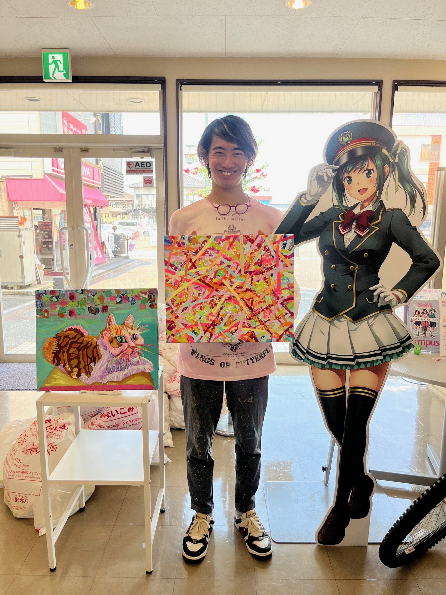 アクリル絵の具という、既にポピュラーな画材を使って描いていますが、独自に考案した画法もあります。